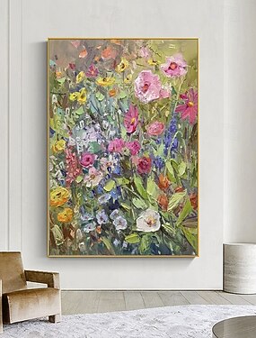 Pintura a óleo feita à mão em tela, arte de parede, decoração moderna de flores e plantas, pinturas a óleo grossas para decoração de casa, pintura sem moldura e sem esticar