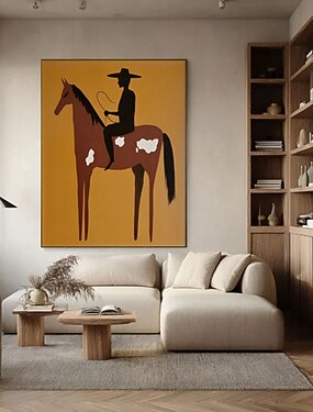 Pintura abstrata marrom feita à mão de um cavaleiro, arte de parede com cavalo e cavaleiro, pintura a óleo original de cavalo, arte de parede com cavalo, grande arte de parede texturizada marrom