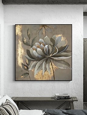 Pintura a óleo abstrata de flores douradas, pintada à mão por Mintura, sobre tela. Arte moderna para decoração de parede. Pintura enrolada, sem moldura e sem esticar.