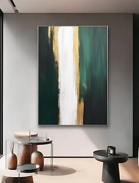 Arte minimalista, arte abstrata feita à mão, pintura à mão em tela verde e branca, pinturas abstratas em tela dourada, arte de parede moderna, decoração moderna para casa.
