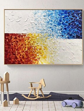 Pintura a óleo artesanal em tela, arte de parede, decoração colorida, abstrata horizontal para decoração de casa, pintura sem moldura enrolada