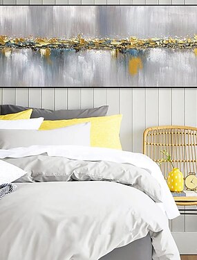 Pintura a óleo artesanal em tela, arte de parede moderna e simples, abstrata em tons de cinza e dourado, para decoração de casa. Pintura enrolada, sem moldura e sem esticar.