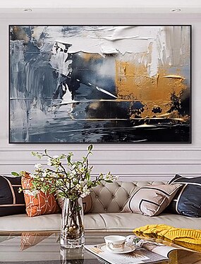 Pintura a óleo artesanal, arte de parede, decoração, moderna, pintada à mão, textura abstrata para sala de estar, decoração de casa, moldura esticada, pintura pendurada/tela enrolada (sem moldura)