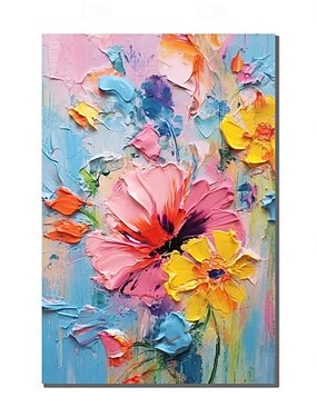 Pintura a óleo artesanal tela arte de parede decoração moderna textura abstrata flores para sala de estar decoração de casa pintura enrolada sem moldura não esticada