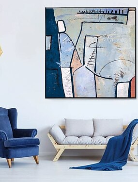 Pintura a óleo artesanal pintada à mão arte de parede abstrata pessoas pintura em tela decoração de casa quadro esticado pronto para pendurar