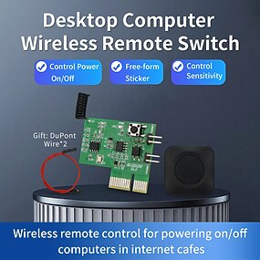 Placa de controle remoto sem fio para PC, placa de controle remoto PCIe para inicialização e desligamento de computadores desktop, interruptor liga/desliga sem fio para gabinete de PC, inclui botão de