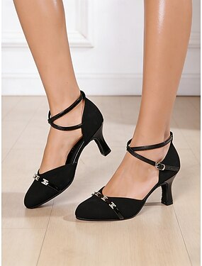 Sapatos de dança profissionais femininos com tiras cruzadas pretas - salto baixo e confortável para prática de dança latina e salão de baile