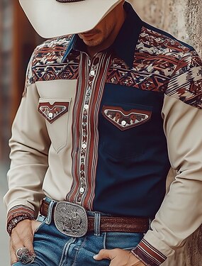 Homens asteca Étnico Cultura indiana Camisa Social camisa ocidental Camisa de caubói Manga Longa Vintage retrô Casual Ao ar livre Roupa de Trabalho Primavera Outono Aberto para a Lateral Dois bolsos