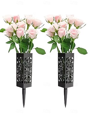 Conjunto de 2/4 vasos de cemitério com estacas para o Dia da Memória, decoração de jardim ao ar livre para a Páscoa, decoração de lápides com tema residencial, exibição de plantas sazonais, decoração