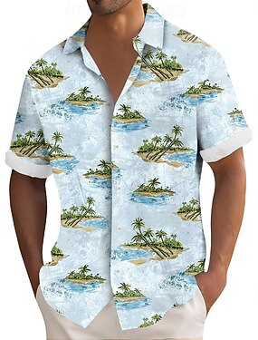 Homens Coqueiro Plantas Tropicais Camisa Social Camisa havaiana camisa de botão Manga Curta Havaiana Recorrer Ao ar livre Férias Feriado Verão Aberto para a Lateral Impressão 3D Camisa tipo linho