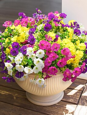 12 ramos de flores artificiais de ipomeia para decoração externa, plantas artificiais, flores de seda coloridas com eucalipto, resistentes aos raios UV, flores artificiais realistas para vasos,