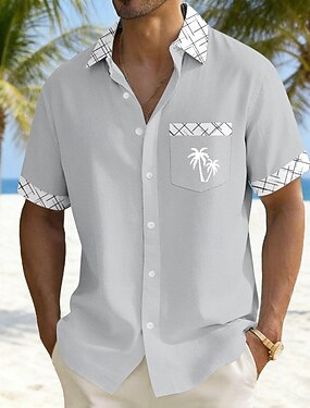 Homens Geométrica Coqueiro Grade / xadrez Camisa Social Camisas havaianas Camiseta Aloha Manga Curta Havaiana Férias Feriado Verão Aberto para a Lateral Impressão 3D Um bolso frontal Camisa tipo linho