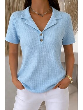 Mulheres Blusa Textura Côr Sólida Vintage à moda Básico Manga Curta Decote V Tops regulares Diário Azul Preto Branco Rosa Vermelho Verão Primavera