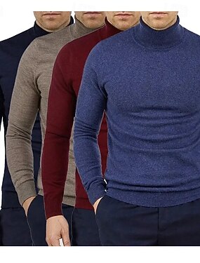 Homens Pulôver suéter Suéter de malha Estriado Tricotar Tops regulares Tricotado Tecido Gola Alta Moda Básico Férias Roupa Diária Roupa Outono Inverno Camelo Vinho S M L