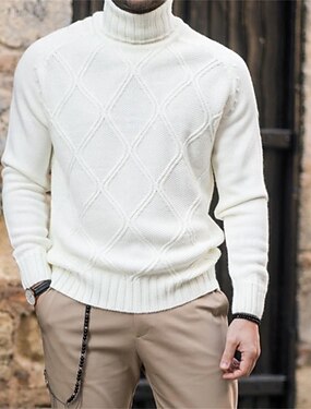 Homens Suéter Pulôver suéter Estriado Tricotar Tops regulares Tricotado Corte Justo Tecido Gola Alta Roupa de Malha Moderna Casual Roupa Diária Roupa Outono Preto Branco M L XL