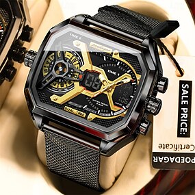Relógios Masculinos Tendência POEDAGAR Data Semana LED Eletrônico Militar Homens À Prova D'água Aço Inoxidável Rede Esportiva Quartz Relógio Masculino