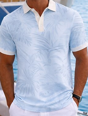 Homens Plantas Camisas Polo Havaianas Manga Curta Camisas polo Camisas de colarinho Casual Roupa Esportiva Roupa Diária Roupas de férias Impressão 3D Botões Malha Respirável Primavera Verão Azul Roxo