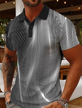 Homens Gráfico Pólo Manga Curta Camisas polo Camisas de colarinho Casual Escola Ao ar livre Roupa Diária Impressão 3D Verão Preto-branco