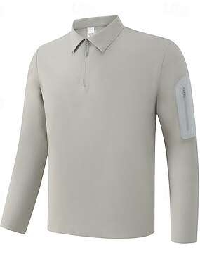 Homens Top de malha canelada Camisas Polos de Golfe Rua Casual Lapela Manga Longa Básico Moderno Tecido Zíper Botões Primavera Outono Todas as Estações Normal Branco Azul Marinha Azul Cinzento Top de