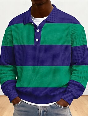 Homens Listrado Estampas Abstratas Geometria Camisas Polo Waffle Camisas Polo pólo de lapela Polo com zíper Camisa de golfe Manga Longa Camisa Aberto para a Lateral Ao ar livre Rua Azul Verde Cáqui
