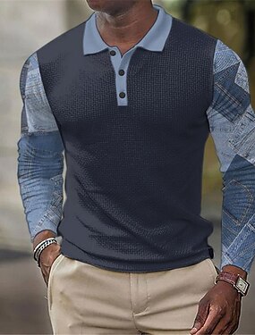 Homens Top de malha canelada Camisas Polos de Golfe Rua Casual Lapela Manga Longa Básico Moderno Tecido Botões Primavera Outono Todas as Estações Fino Branco Azul Marinha Azul Cinzento Top de malha