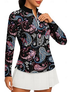 Mulheres Estampado Cashemere Tops Camisa polo de caminhada Camisa de tênis Camiseta de tênis Manga Longa Imprimir Quarter Zip Pullover UPF50+ Proteção UV Elástico Respirável Tênis Golfe Pickleball