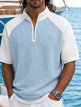 Homens Camisas Polo Waffle Polo com zíper Casual Ginástica Lapela Quarter Zip Manga Curta Moda Músculo Côr Sólida Tecido Zíper Verão Primavera Superdimensionado Azul Preto Vinho Azul Marinha Roxo