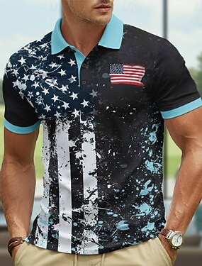 4 de julho de 2026 250º Homens American US Flag Camisas Polo Manga Curta Camisas polo Camisas de colarinho Casual Roupa Esportiva Botões Primavera Verão Azul