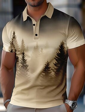 Homens Árvore Montanha Pólo Manga Curta Camisas polo Camisas de colarinho Casual estilo ocidental Ao ar livre Roupa Esportiva Roupa Diária Impressão 3D Verão Preto Azul Roxo