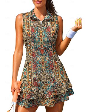 Mulheres Geométrica Boêmio Vestido de tênis Vestido esportivo Sem Manga Floral Respirável Tênis Golfe Badminton Colarinho polo Gola com zíper Vestidos Laranja Roupas de tênis