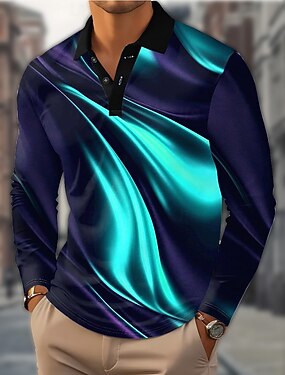 Homens Geométrico Linha Pólo Manga Longa Camisas polo Camisas de colarinho Business casual O negócio Roupa Esportiva Roupa Diária Impressão 3D Botões Primavera Outono Inverno Azul Céu Azul Roxo