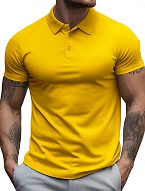 Homens Camisa de golfe Polos Piquê O negócio Casual gola pólo com nervuras Manga Curta Moda Básico Côr Sólida Xadrez Botões Logotipo Verão Primavera Primavera & Outono Normal Amarelo Azul Marinha