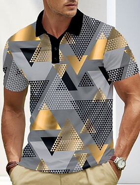 Homens Abstrato Geométrico Pólo Manga Curta Camisas polo Lapela Business casual O negócio Roupa Esportiva Impressão 3D Botões Verão Azul Dourado Verde