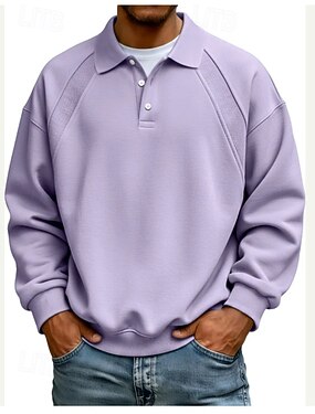 Homens Camisas Polo Waffle Casual Lapela Manga Longa Moda Moderno Côr Sólida Tricotado Primavera Primavera & Outono Todas as Estações Ajuste Largo Azul Preto Azul Marinha Roxo Cinzento Camisas Polo