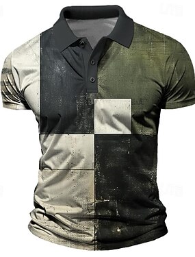 Homens Abstrato Geométrico Camisas Polo Waffle Manga Curta Camisas polo Camisas de colarinho Business casual O negócio Roupa Esportiva Roupa Diária Impressão 3D Botões Verão Azul Vermelho Verde