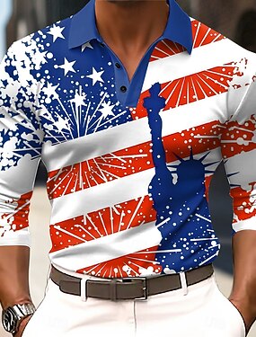 4 de julho de 2026 250º Homens American US Flag Pólo Manga Longa Camisas polo Lapela Casual Rua Roupa Diária Traje de festival Impressão 3D Botões Primavera Outono Inverno Azul Azul 1 Azul 3#
