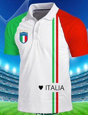 Copa de Futebol de 2026 Homens Bandeira italiana Camisas Polo Esportivas Camisa de golfe Manga Curta Camisas polo Camisas de colarinho Casual Streetwear Roupas de férias Trajes de festa Impressão 3D