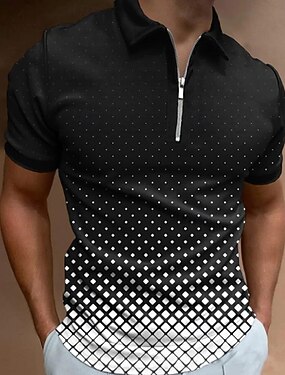 Homens Geométrico Polo com zíper Manga Curta Aberto para a Lateral Casual Diário Ao ar livre Roupa Esportiva Casual / Diário Zíper Verão Preto