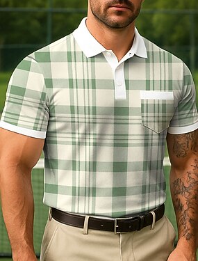 Homens Geométrico Golf Camisas Polo Esportivas Manga Curta Camisas polo Camisas de colarinho Casual Roupa Esportiva Botões Verão Primavera Azul Branco Verde