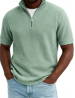 Homens Textura Polo Malha Waffle Casual Diário Quarter Zip Manga Curta Moda Tecido Zíper Puro Primavera Verão Verão Primavera Normal Azul Preto Branco Vinho Verde Caqui Textura