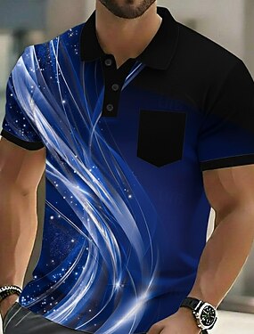 Homens Geométrico Linha Camisas Polo Manga Curta Camisas polo Camisas de colarinho Casual Ao ar livre Roupa Esportiva Roupa Diária Impressão 3D Botões Verão Primavera Azul Roxo Verde