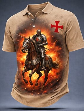 Homens Cruz Camisas Polo Manga Curta Camisas polo Lapela Vintage Casual Rua Roupa Esportiva Impressão 3D Botões Malha Respirável Verão Primavera Preto Vermelho Marron