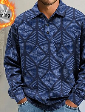 Homens Geométrica Pólo Manga Longa Camisas polo Camisas de colarinho Casual Business casual O negócio Roupa Esportiva Roupa Diária Botões Bolsos Impressão 3D Primavera Outono Inverno Azul Roxo Verde