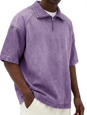 Homens Camisas Polo Camisa Acid Wash Casual Feriado Aberto para a Lateral Quarter Zip Manga Curta Moda Básico Côr Sólida Zíper Estilo vintage Verão Primavera Azul Verde Escuro Preto Vermelho Azul