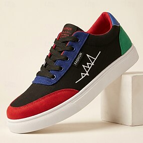 Tênis casual masculino preto, vermelho e azul com cadarço, leve, estilo streetwear, ideal para uso diário, viagens, looks de fim de semana, lazer ao ar livre, moda jovem e estilo casual moderno.