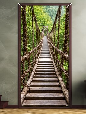 Capa de porta com ilusão de ótica 3D inspirada em ponte suspensa, impressão plana 2D para adicionar um toque aventureiro a qualquer ambiente.