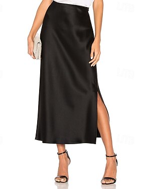 Mulheres Elegante Moda Longo Cintura Alta Saias Tecido Pontas duplas Micro-Elástica Diário Rua Verde Maçã Preto Champanhe Verde Tropa Verão Elastano Poliéster