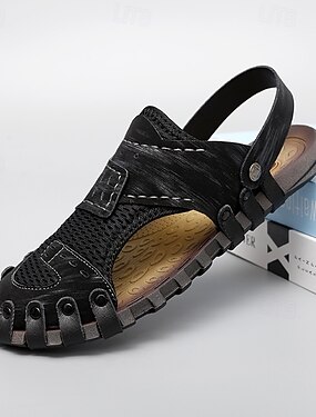 Sandálias casuais masculinas de verão – cabedal em couro sintético, design aberto na frente, fáceis de calçar, perfeitas para o dia a dia, viagens e passeios na praia.