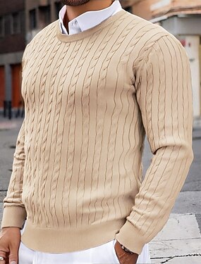 Homens Suéter Pulôver suéter Estriado Tricotar Tops regulares Tricotado Corte Justo Tecido Gola Redonda Roupa de Malha Moderna Casual Roupa Diária Roupa Outono Camelo Preto S M L