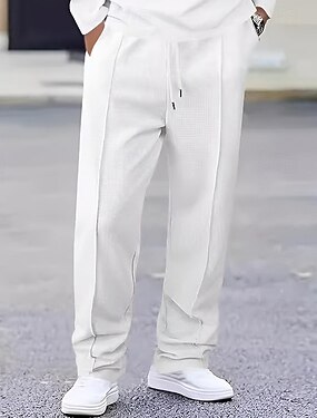 Homens Calças de linho Calça verão Calças de praia Com Cordão Cintura elástica Perna reta Tecido Conforto Respirável Comprimento total Casual Diário Ao ar livre Moda Estilo Clássico Azul Preto Sem